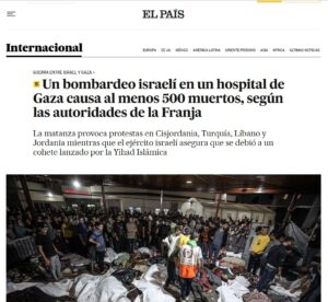 “Un bombardeo en un hospital de Gaza causa cientos de muertos”.