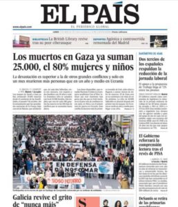 Otro elemento central del activismo de El País ha sido su insistencia en introducir el término “genocidio” en la agenda informativa, incluso cuando organismos internacionales no lo han decretado. Como hemos visto, aparece con frecuencia en artículos de opinión, como si un genocidio fuera cuestión de opinión, pero también se da por supuesto en páginas informativas y sin comillas.
